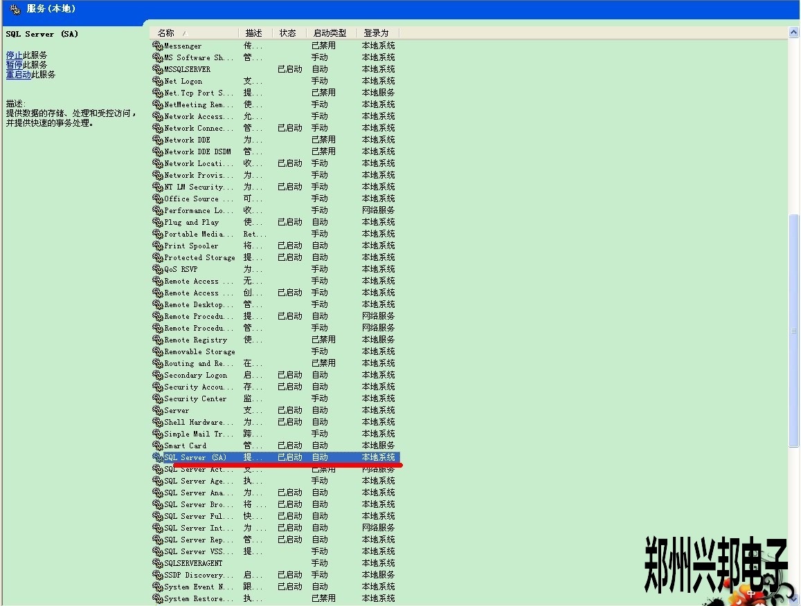 2. 控制面板-->工具管理-->服務(wù),找到SQL Server啟動一下就OK了,如下圖所示